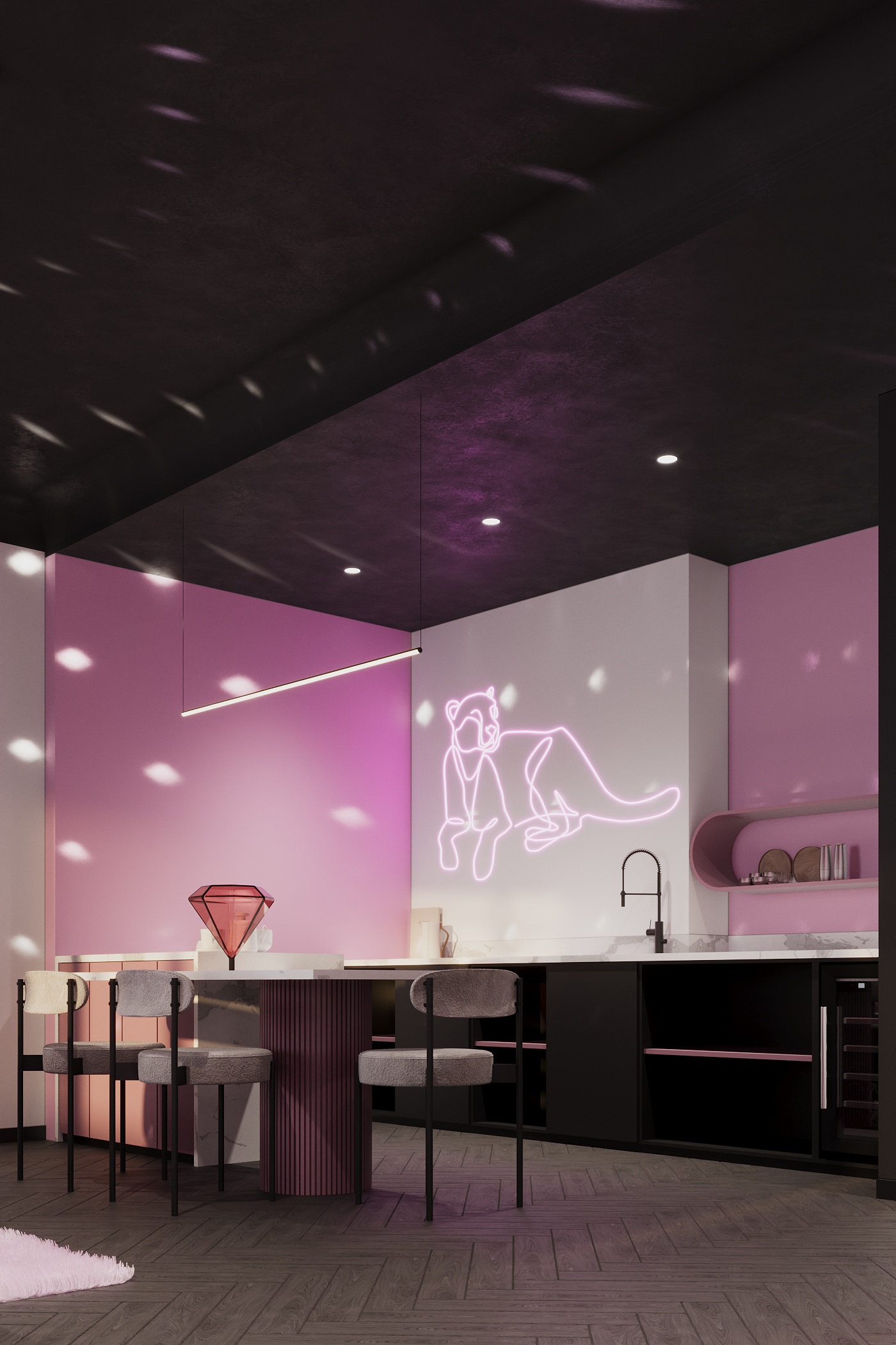 Пентхаус «Pink Panther» – коли настрій вимагає сцени. Це простір для стильних вечірок і яскравих зустрічей. Три кімнати, кухня, міні-бар і тераса з видом, що надихає. Інтер’єр наповнений енергією, в ньому звучить музика, народжуються ідеї та розчиняється час.